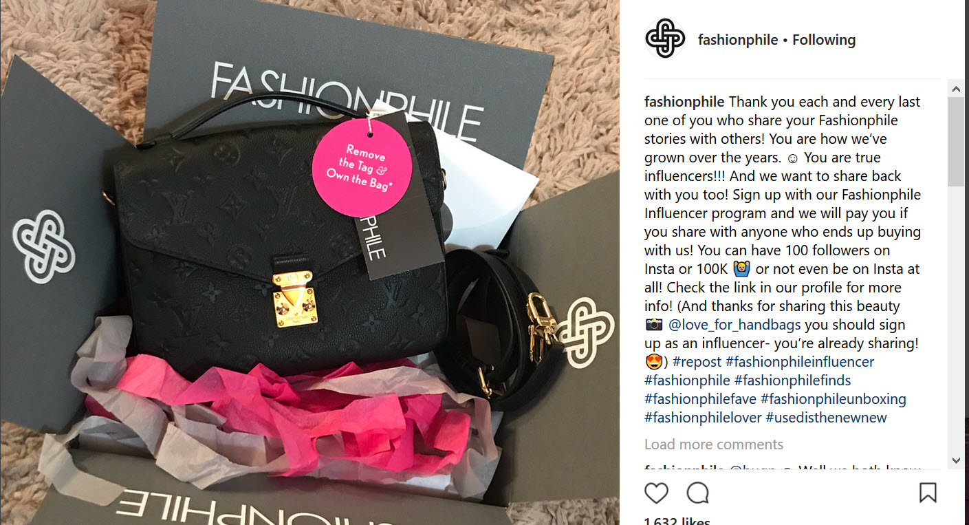 Sample of how Fashionphile mentioned the Influencer Program on their Instagram page: