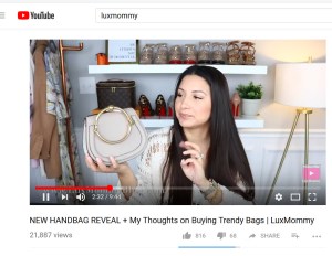 Example of a happy Fashionphile customer/Influencer sharing her Chloe bag find with her You Tube following using ShareASale affiliate links: