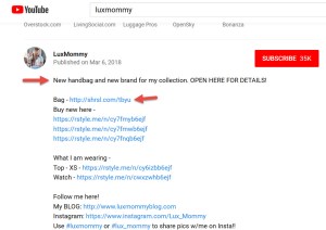 She has added in a direct link to Fashionphile in the video description area and she will earn money every time one of her visitors buys: